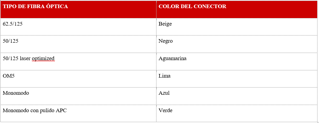 - Características físicas: Ajuste similar a un RJ45 (tipo push and pull). Más seguro y compacto que el SC, así que permite incluso mayores densidades de conectores en racks, paneles y FTTH.